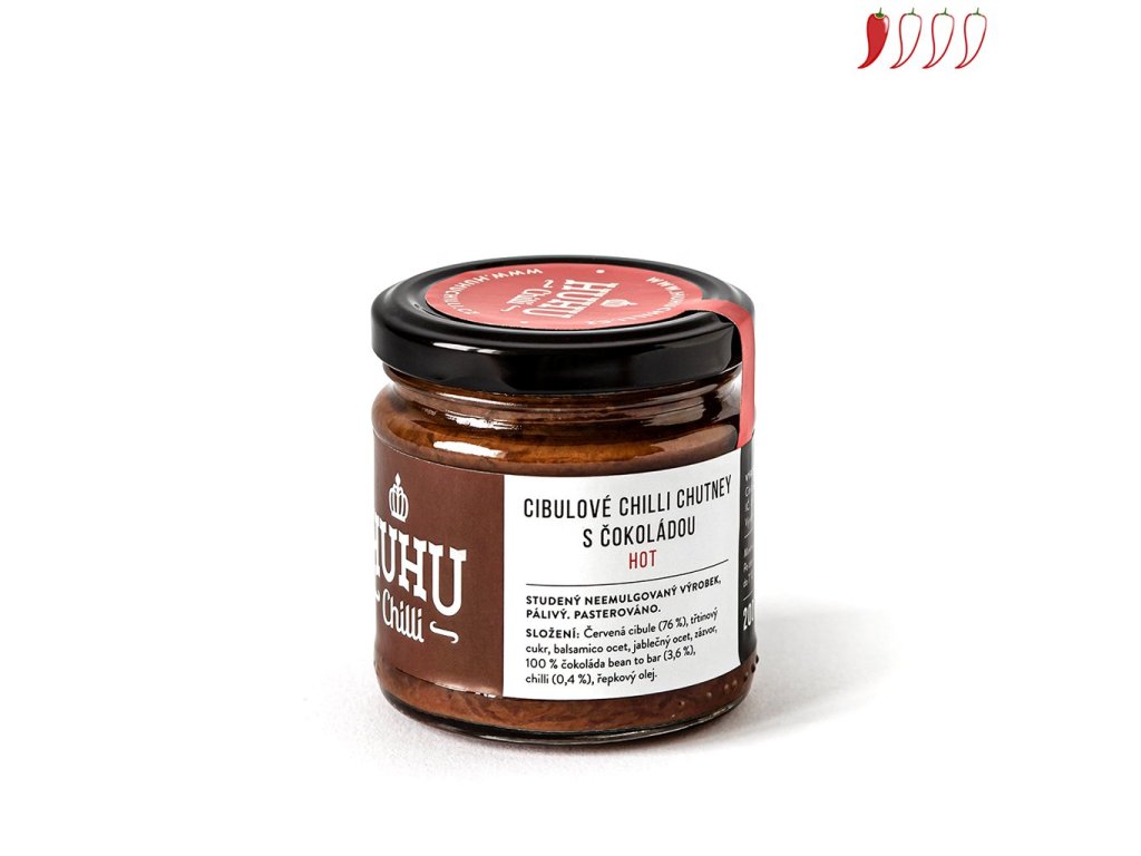Složení: červená cibule(76%), balsamico ocet*, třtinový cukr, jablečný ocet, řepkový olej, 100% bean to bar čokoláda, chilli(0.3%), zázvor.