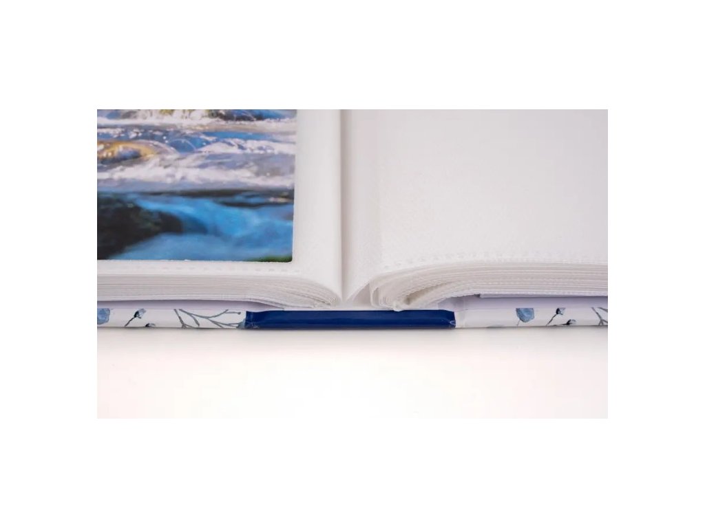 Jedná se o elegantní zasunovací fotoalbum s laminovanou obálkou v modro-bílých barvách. Album má svařovanou vazbu ve formě knihy. Je ideální pro uchování 200 fotografií formátu 10 x 15 cm, které se vkládají zasouváním dvě nad sebou. Mezi fotografiemi je prostor pro vkládací popisky. Listy jsou vyrobeny z bílého PVC/PP materiálu. Na obálce je vyobrazen decentní květinový motiv s akvarelovým vzorem drobných květů a listů v odstínech modré. Díky svému jemnému a neutrálnímu designu je album ideální pro uchování vzpomínek z různých událostí, jako jsou dovolené, rodinné oslavy nebo jiné cenné zážitky.