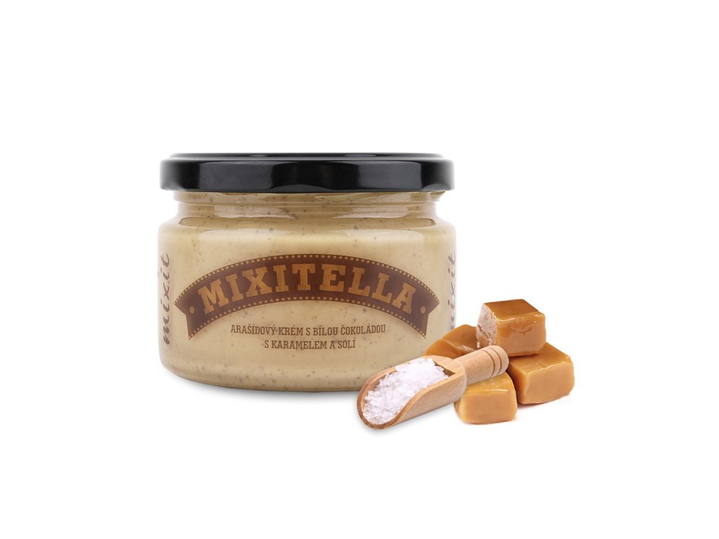 Novinka! Nechte na jazyku rozplynout 70% krém z výběrových pražených arašídů, který jsme zjemnili bílou karamelovou čokoládou. Chuťový zážitek umocní drobná zrníčka soli, která si zamilujete s první lžičkou. :-) Mixitelly neobsahují žádné umělé konzervanty ani palmový olej.