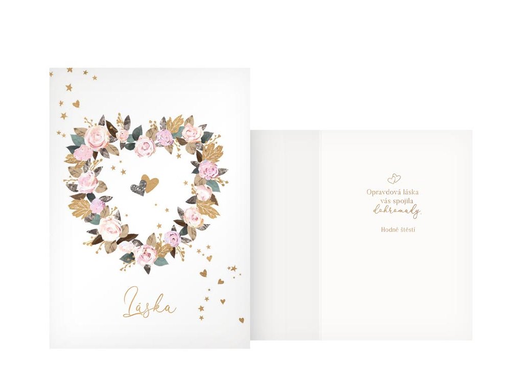 Přání svatební - srdce z růží