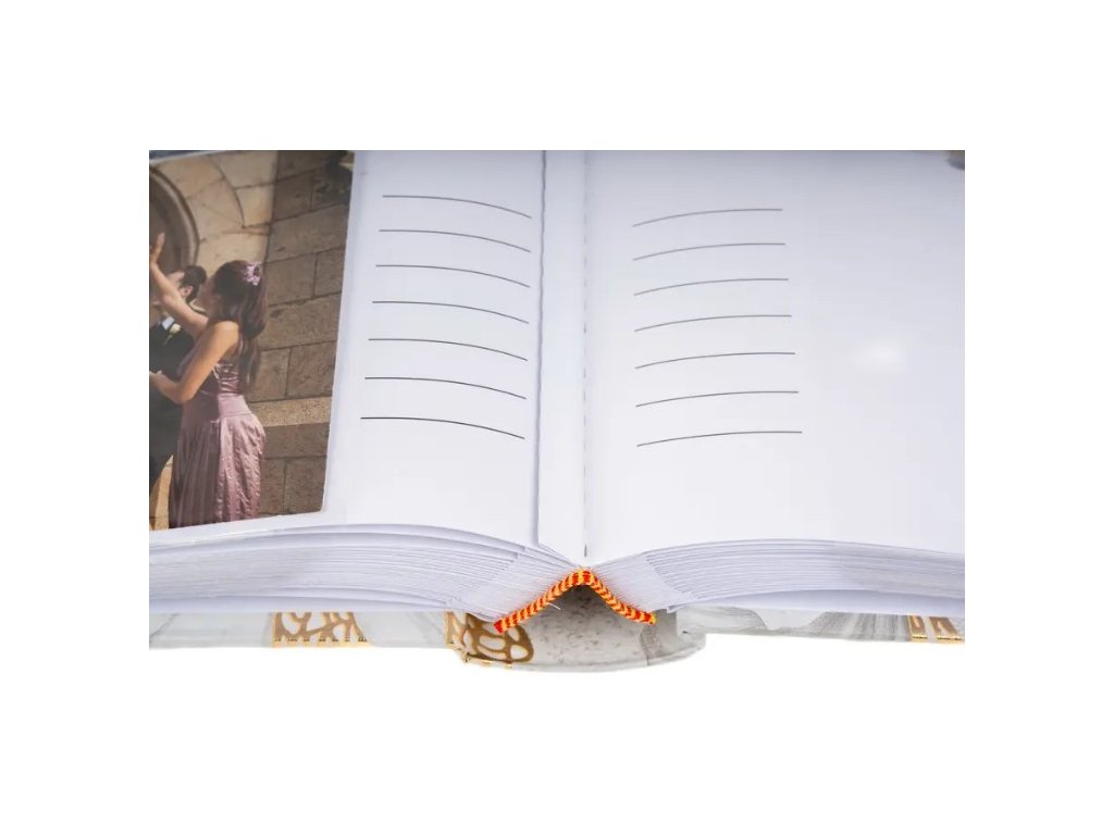 Uchovejte si vzpomínky na svůj svatební den v tomto elegantním fotoalbu v šedém provedení, které je zdobené květinovým vzorem a má na obalu vyměnitelnou fotografii. Díky zlatým detailům působí album velice luxusně. Pevné desky a šitá vazba zaručují odolnost a dlouhou životnost. Album pojme až 200 fotografií ve formátu 10 x 15 cm, které se vkládají dvě nad sebe. U každé fotografie je navíc prostor pro vlastní poznámky, díky kterým si snadno uchováte všechny důležité okamžiky.