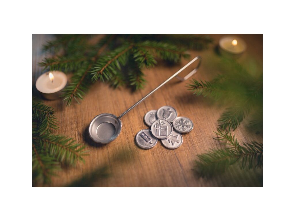 Odlévání olova je tradiční český vánoční zvyk, kdy v kovové lopatce rozžhavíte kousek olova a to naráz roztavené vlejete do nádoby se studenou vodou. Tím vzniknou různé tvary, které představují, co dotyčného v příštím roce čeká - nápovědou vám bude přiložený návod obsahující výklad jednotlivých tvarů. Sada je určena pro opakované použití. Doporučení: Odlévací pánvičku dejte na plynový hořák či sklokeramickou varnou desku. Nad svíčkou může trvat roztavení dlouho. Případně doporučujeme svíčku s dvěma knoty.